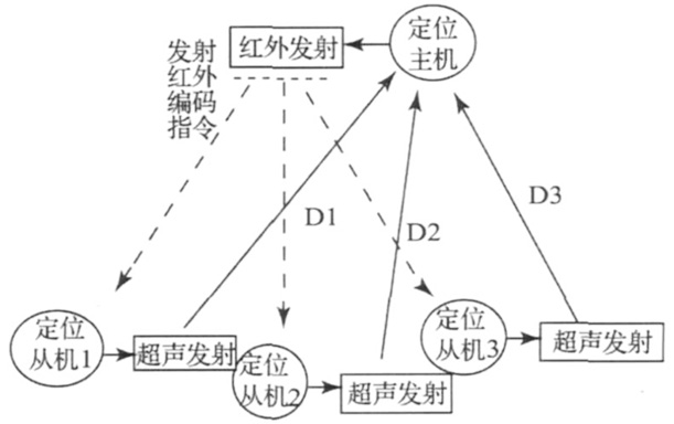 超声波定位目前大多数采用反射式测距法。系统由一个主测距器和若干个电子标签组成,主测距器可放置于移动机器人本体上,各个电子标签放置于室内空间的固定位置。