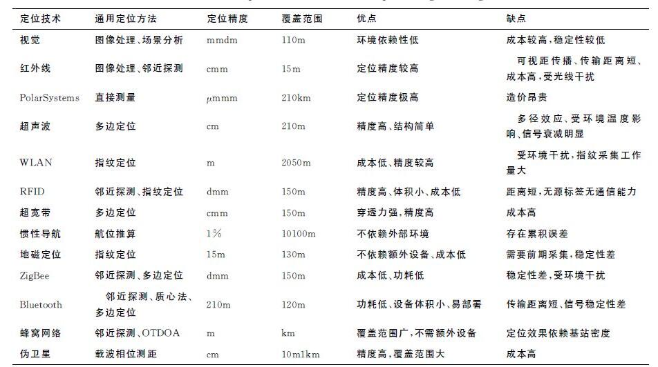 根据上面介绍的定位原理和观测量,衍生出了多种室内定位技术,下面将对主流的室内定位技术进行简要介绍。